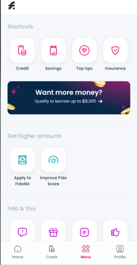 Access all Fido products in one spot; Credit, Savings, Top-Up, and Insurance.Get Higher Amount